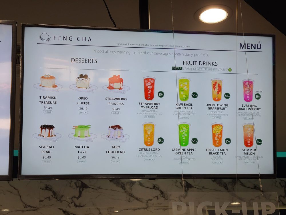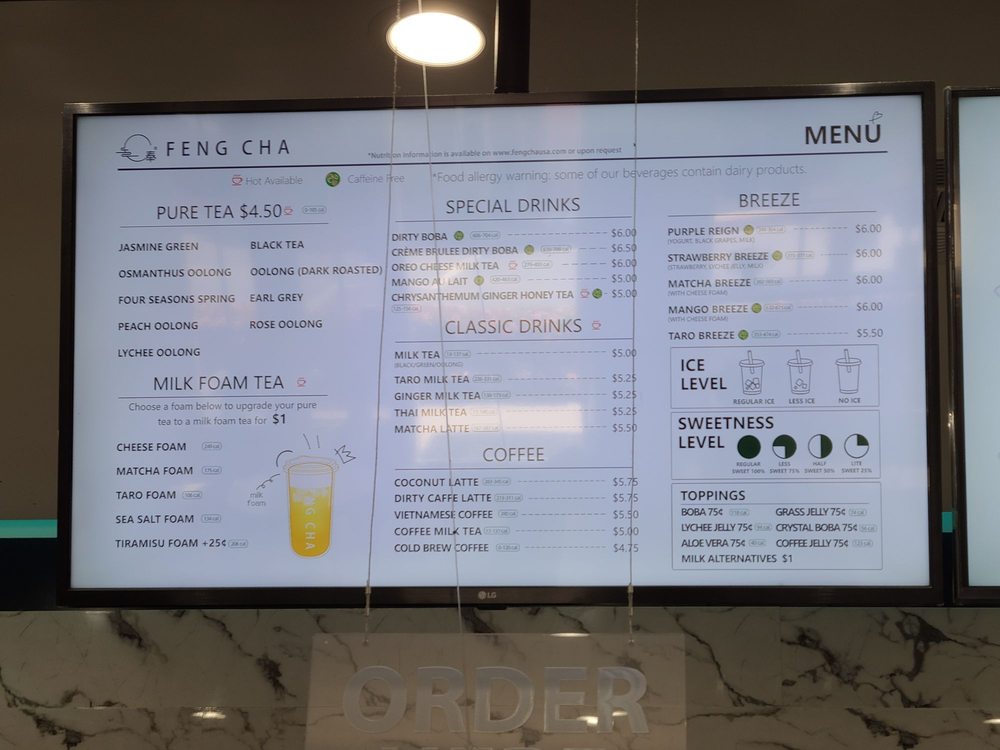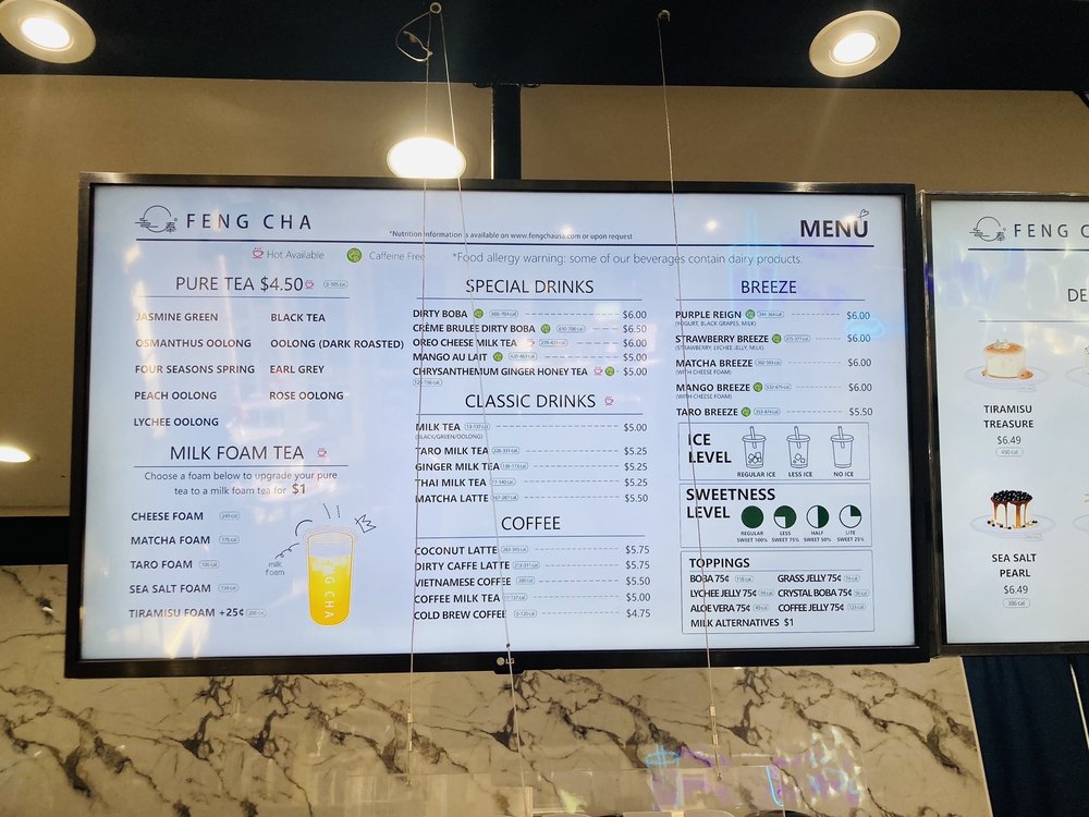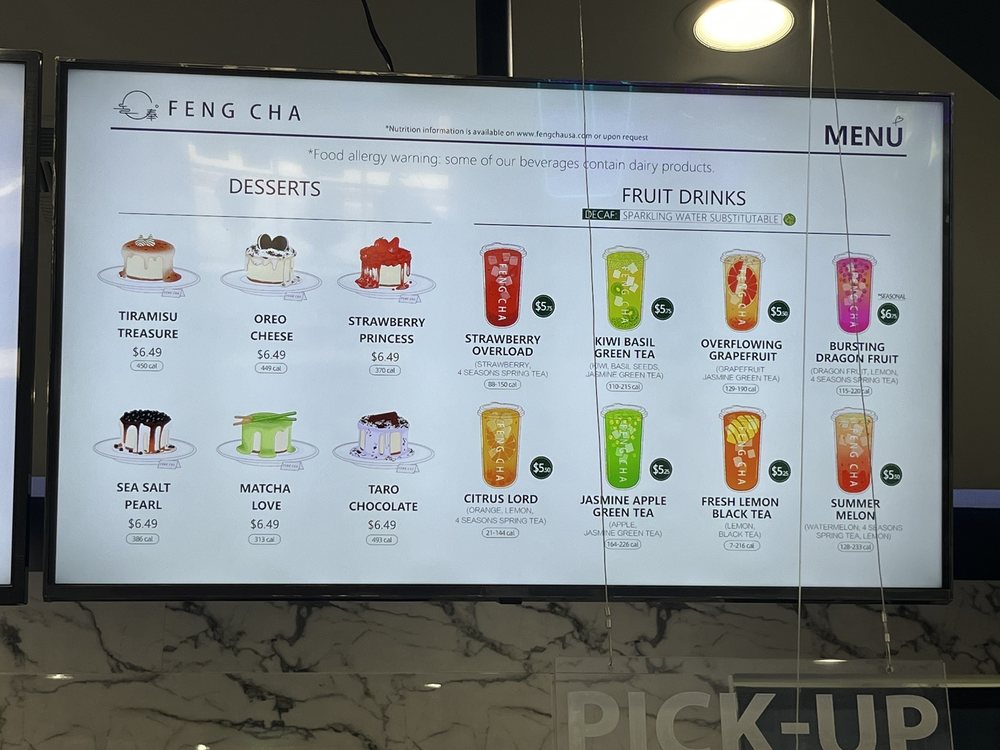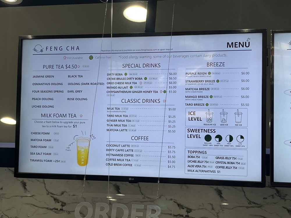 Feng Cha Teahouse, located at 891 Baker St Ste A18 in Costa Mesa, CA, offers a delightful array of desserts, bubble tea, coffee, and tea. The menu boasts a variety of options, including vegan choices and customizable sweetness and ice levels. Customers rave about favorites like the Sea Salt Pearl and the Dirty Boba, featuring brown sugar milk tea with cheese foam. The ambiance is charming with nature-inspired decor, and the service is top-notch. With friendly staff and quick service, Feng Cha is a solid choice for boba enthusiasts. Don't miss out on their signature drinks like the Matcha Breeze or Oreo Cheese Milk Tea. Whether you're stopping by for a sweet treat or a refreshing drink, Feng Cha Teahouse promises a delightful experience for all.